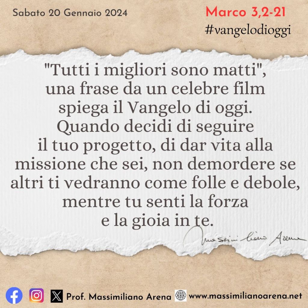“Tutti i migliori sono matti”, una frase da un celebre film (Alice in Wonderland, pronunciata dal cappellaio matto) spiega il Vangelo di oggi.
