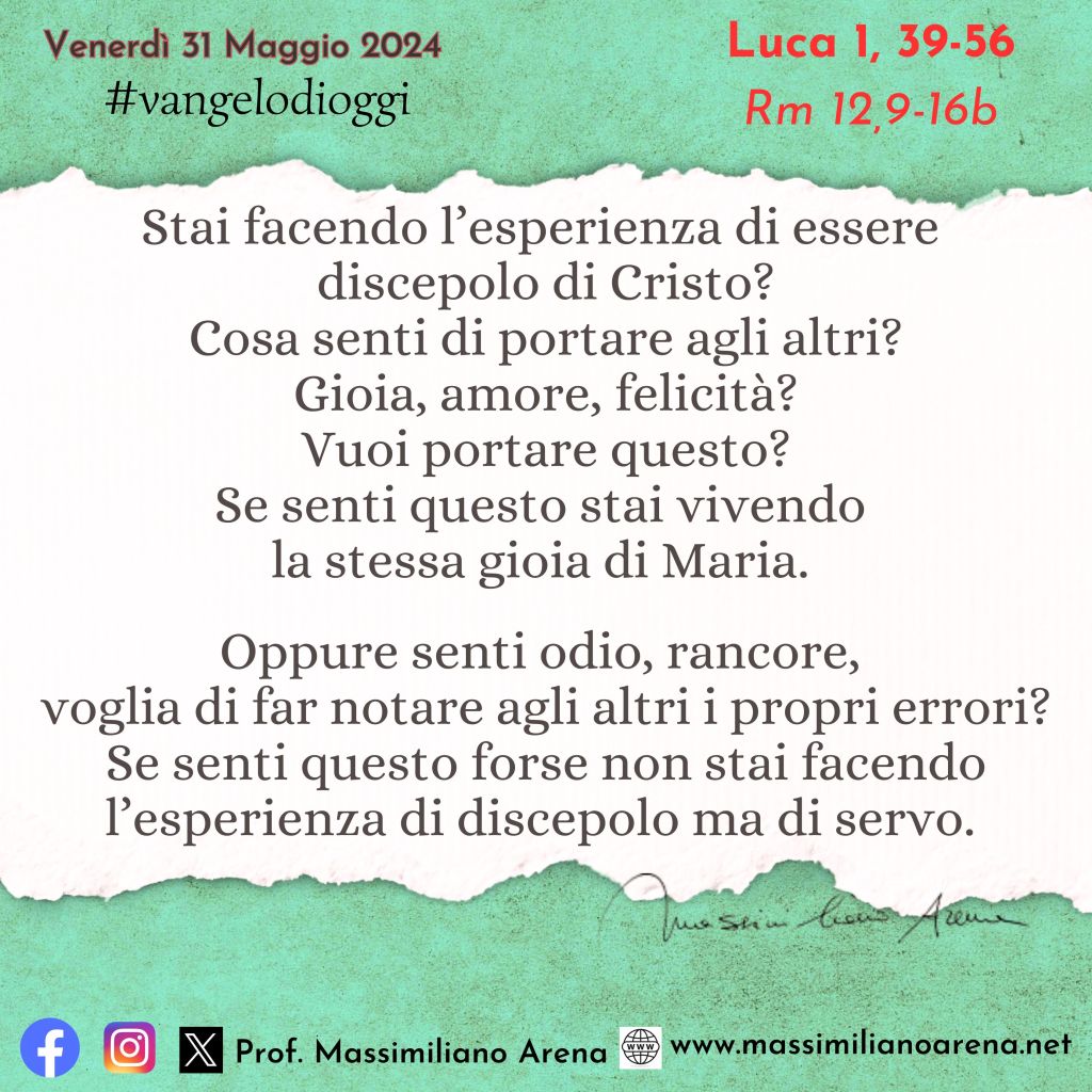 Maria riceva una bella notizia, fa esperienza piena dell’amore di DIo, è l’esigenza è correre verso la cugina ad annunciare che la sua vita è stata toccata da questa grazia. Maria balla con la cugina il Magnificat. Che esplosione di gioia. Essa è la prima discepola e prima annunciatrice, prima “apostola”.