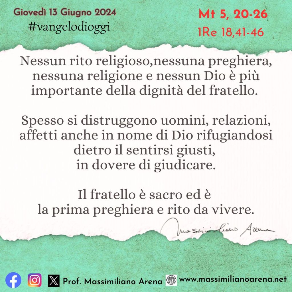 La seconda parte è ancora più forte: nessuna preghiera e nessun rito si può fare se siamo in lite con qualcuno.