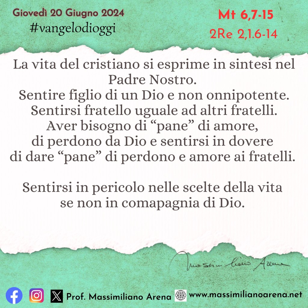 La sintesi di ogni preghiera, di ogni etica del cristianesimo è contenuta nel Padre Nostro.