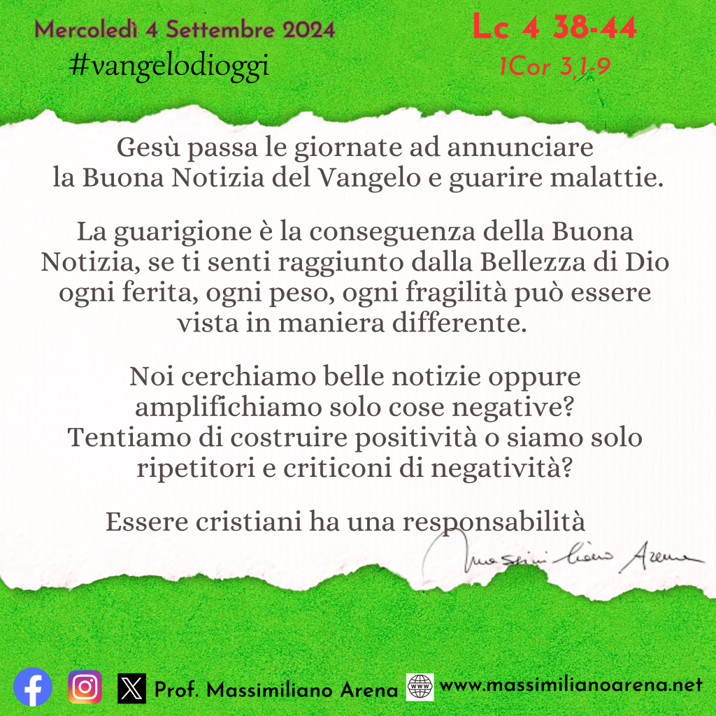 Una febbre da cui guarire. Gesù guarisce con la sua Parola. Il Vangelo si chiude con Gesù che parla di buone notizie.