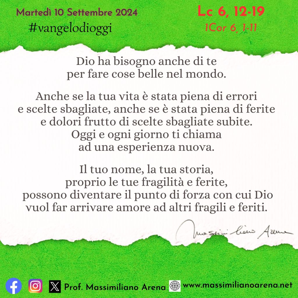 Sta solo a te oggi dire “voglio mettermi in gioco”. Ti chiederai “ma cosa posso fare io?”. Amare le ferite altrui come Cristo ha amato le tue, dire a tutti che Dio ama come ha amato te, prenderti cura dei fratelli come Dio fa con te.