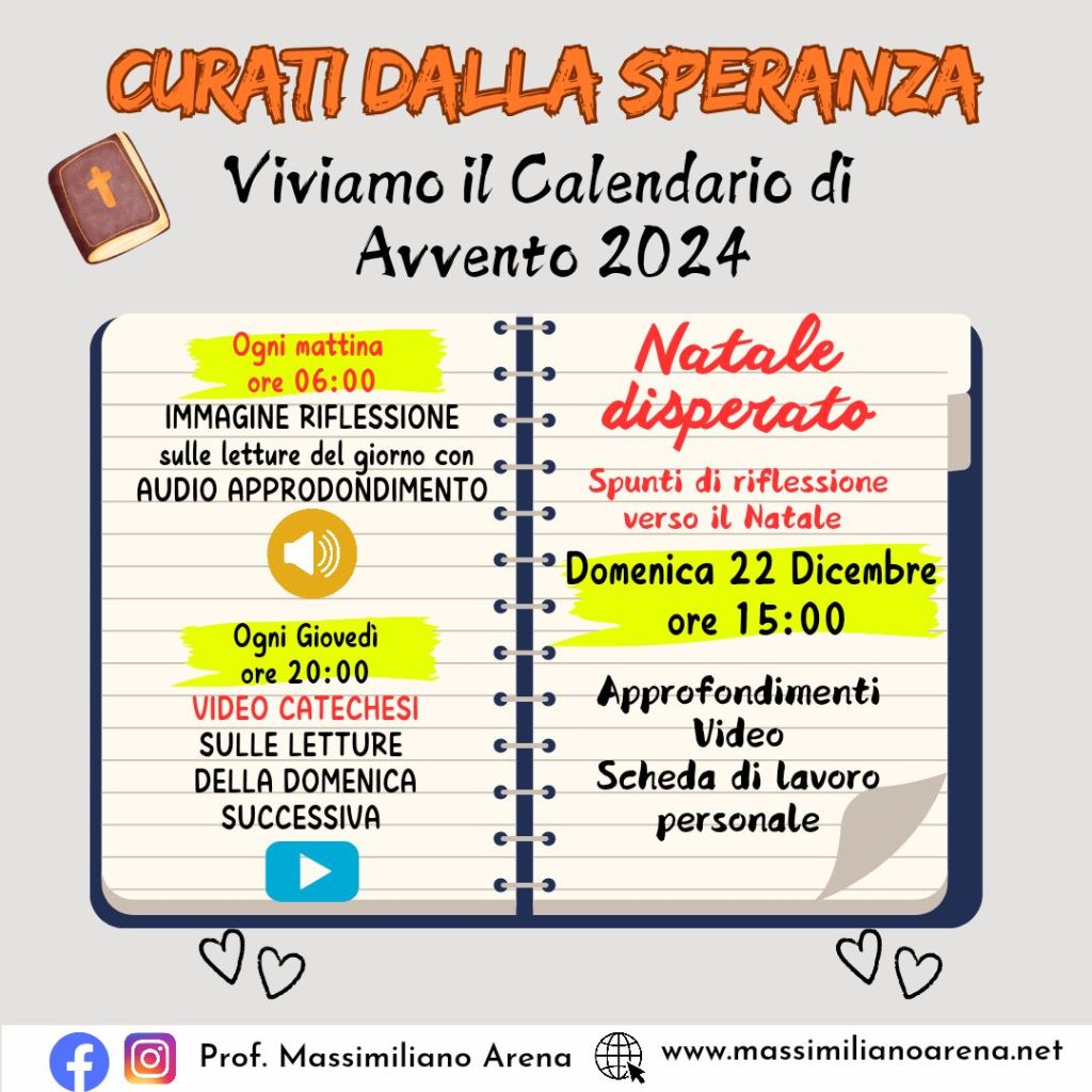 Dal 1 al 24 Dicembre per rivedere il nostro modo di sperare. Tutti abbiamo bisogno di speranza, ma se non costruita bene essa ci rende disperati in partenza.