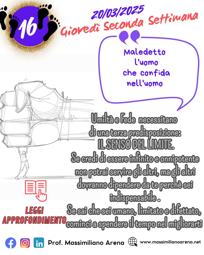 Il senso del limite, l’avere consapevolezza che non sei un dio, che sei fragile, ti predispone ad avere Fede nel vero Dio e avere umiltà verso gli altri.