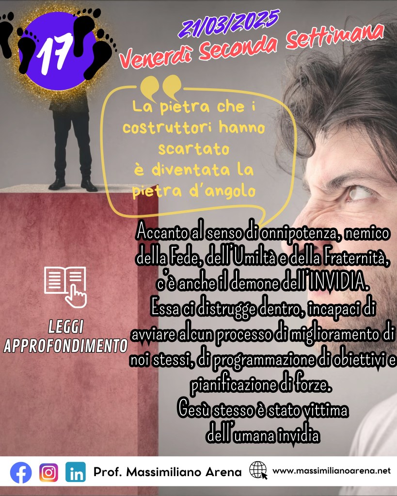 Cristo ha pagato il suo prezzo per l’invidia di uomini, ma con il Suo Amore e la Sua Resurrezione ci libera dall’invidia e ci apre alla Speranza di crescere davvero.