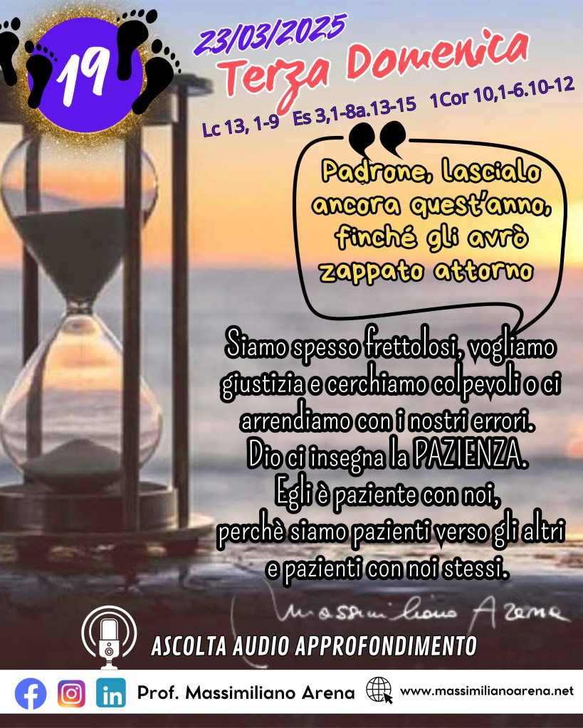 Ci vuole PAZIENZA dice Gesù. Ci spiega chiaramente che DIO E’ PAZIENZA!