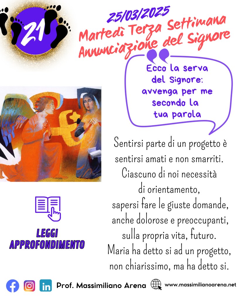 Un accenno quasi natalizio all’interno del percorso quaresimale, l’annunciazione di Maria.