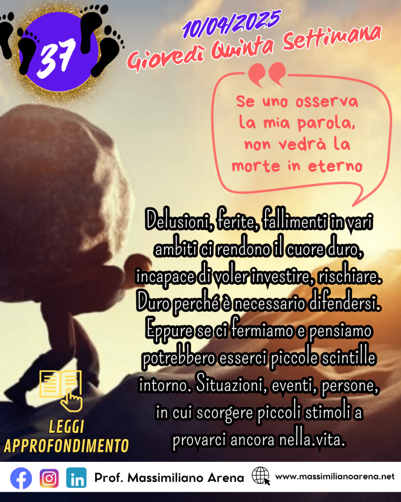 Cosi è il rapporto con Cristo, è Amore, posso cercarlo con la mia ragione, ma poi arriva la fede, il passaggio dell’abbandono che è irrazionale. Vivere Cristo, vivere il Vangelo non ha un immediato riscontro. Le Beatitudini sono solo due al presente, sei al futuro. E’ vivere lanciando l’ancora in qualcosa che è oltre l’umano, è la Speranza. Senza ciò sarebbe solo filosofia di vita, non fede. La morte non toccherà i fedeli alla Parola. Quale morte? Non quella del corpo, ma quella “seconda”, come dice San Francesco nel Cantico. Vivremo con Dio, in eterno, perchè avremo costruito la relazione profonda di Amore con Lui.