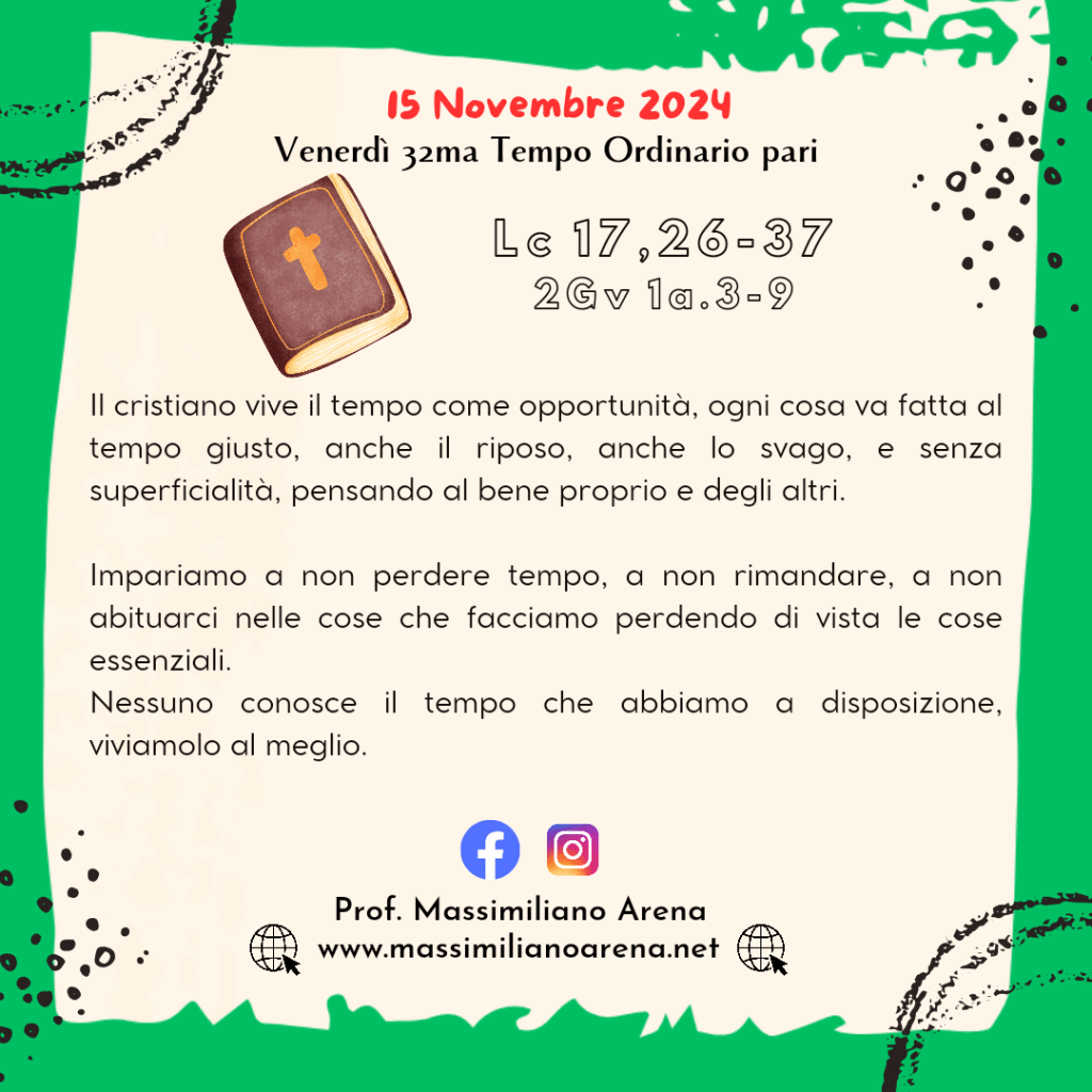 Continua a leggere “16Novembre2024 – LA VITA COME PREGHIERA – (Sabato 32ma Tempo Ordinario pari)”